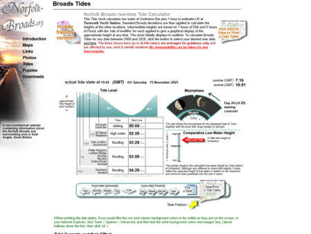 Norfolk Broads Real Time Tide Calculator