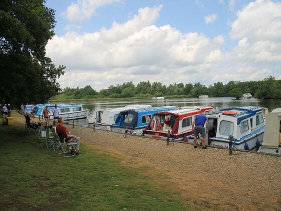 The day stayed sunny and very warm into the evening which always helps! Several crews even managed to stretch their legs...and go for a walk...as far as the Fur & Feather for a bite to eat and/or a "cooler" or two...Others took advantage of the warm, dry evening for bank side barbeques and grills and al fresco dining....