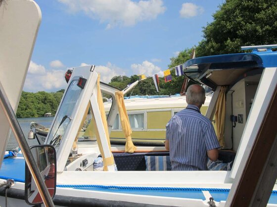 Boats circled around Salhouse Broad while everyone got off the moorings, leaving the geese and bystanders on the other Salhouse mooring wondering what was going on.
